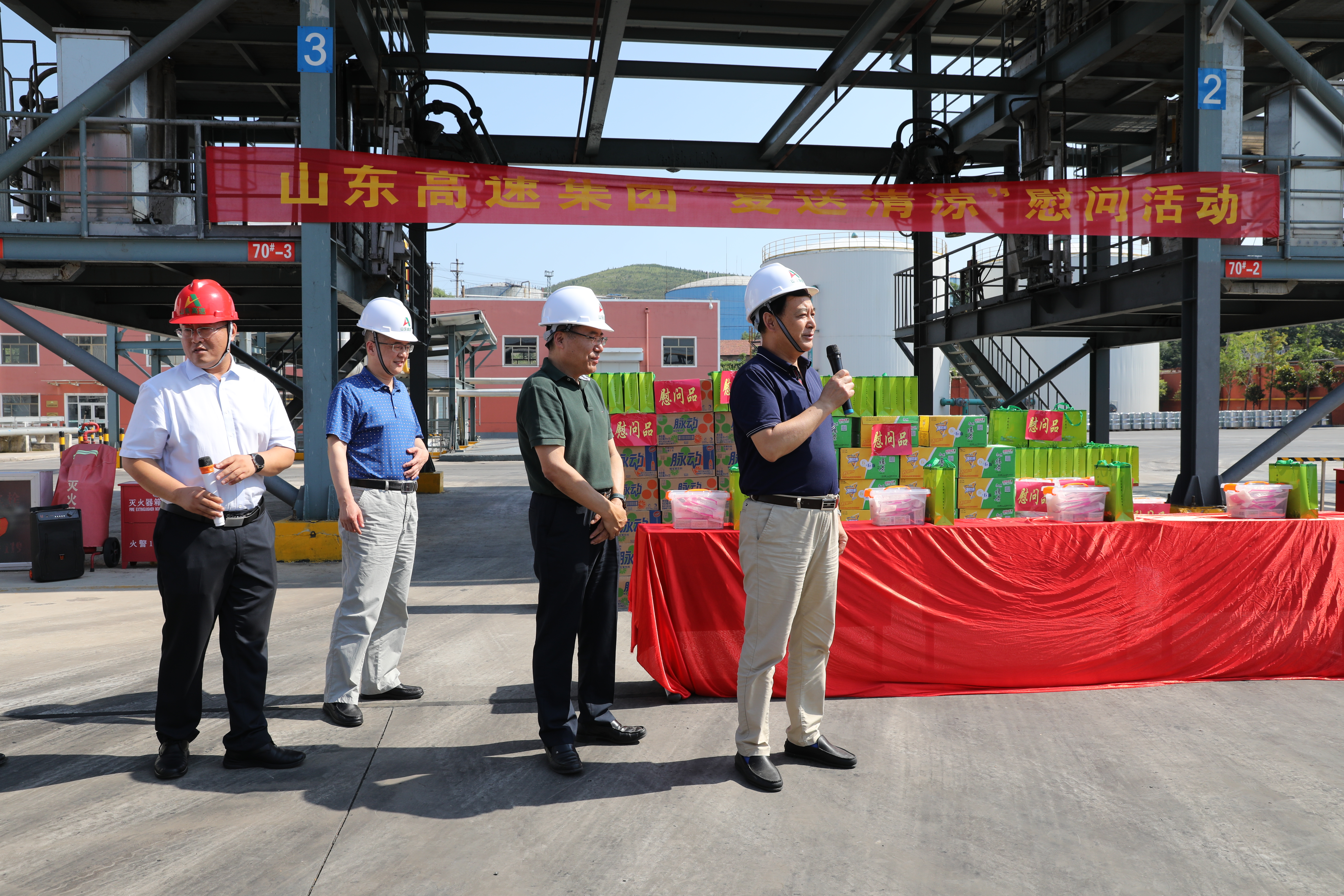 2020年7月20日下午,張維政領(lǐng)導(dǎo)一行不畏酷暑,深入生產(chǎn)一線,仔細(xì)查看車間防暑降溫措施的落實(shí)情況,詳細(xì)了解職工的工作生活情況,對(duì)一線職工為物資集團(tuán)、高速集團(tuán)乃至全省、全國(guó)公路建設(shè)作出的較大貢獻(xiàn)給予了高度評(píng)價(jià),并給扎根一線的職工送上了茶葉、飲料、冰糖等防暑物品。同時(shí)要求,公司黨組織、工會(huì)特別是班子成員、基層干部要堅(jiān)持“以人為本”的關(guān)懷理念,嚴(yán)格落實(shí)防暑降溫工作安排,繼續(xù)做好關(guān)心關(guān)愛公司一線職工各項(xiàng)工作,切實(shí)保障廣大職工的身心健康,盡最大努力打牢職工安全生產(chǎn)基礎(chǔ),保護(hù)好公司發(fā)展的基石,為公司乃至物資集團(tuán)、高速集團(tuán)實(shí)現(xiàn)高質(zhì)量健康發(fā)展保駕護(hù)航。