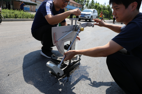 同日,山東省交科院專家對(duì)公司6月份在張皇路鋪設(shè)的PMRE試驗(yàn)段進(jìn)行了細(xì)致檢測(cè),結(jié)果顯示新路面抗滑性能得到顯著改善,構(gòu)造深度自0.6mm提高到1.7mm,摩擦系數(shù)從50BPN提到81BPN,充分顯示了PMRE新材料的優(yōu)異路用性能。
